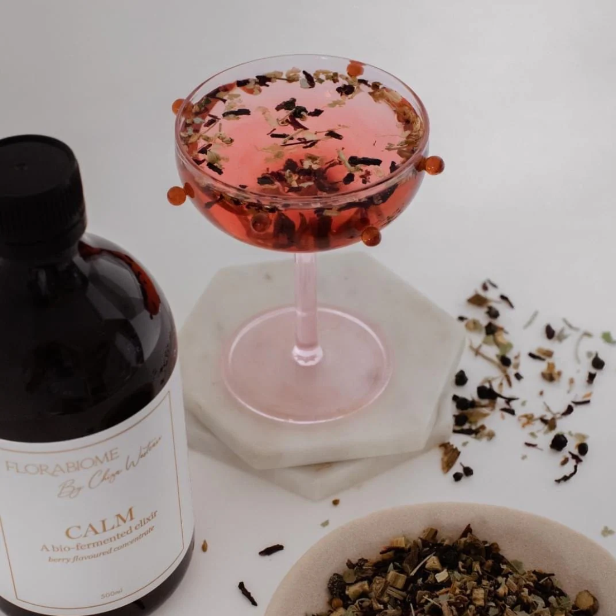Calm is a bio-fermented elixir, packed full of antioxidant-rich goji berries and stress-modulating ashwagandha, rhodiola, passionflower and lemon balm.