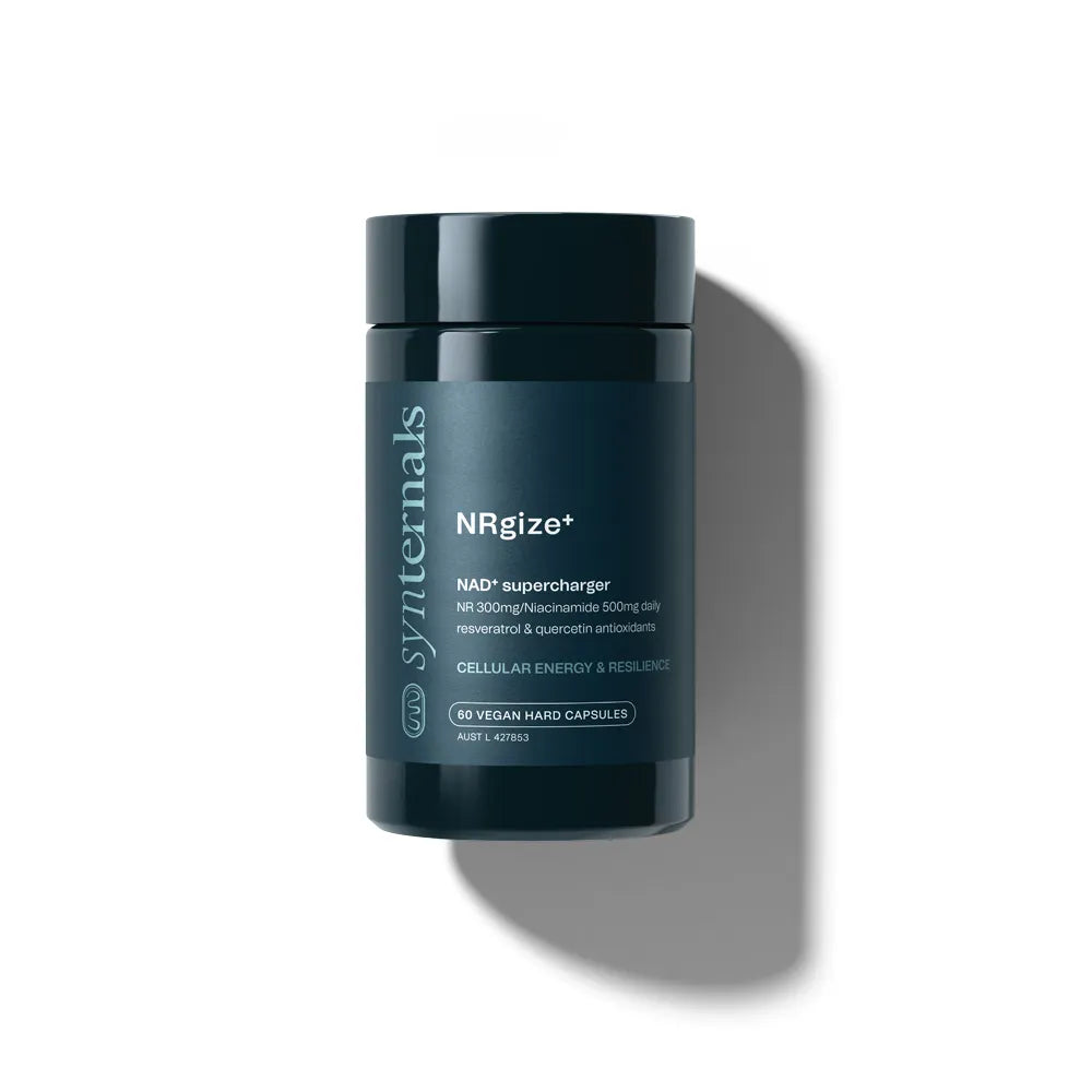 NRgize+ is a comprehensive cellular energy supplement crafted to elevate healthspan and invigorate the body's cell vitality. At the core of this formula is Nicotinamide Riboside (NR) and Nicotinamide, clinically proven to boost NAD+ levels in mature adults. NAD+ is an indispensable molecule needed for vital cellular processes. Combined with the potency of Quercetin and Resveratrol, renowned antioxidants, NRgize+ acts as a formidable defence against cellular fatigue and free radical damage. NRgize+ is also vegan, nut-free, and gluten-free, catering to a wide range of dietary needs.