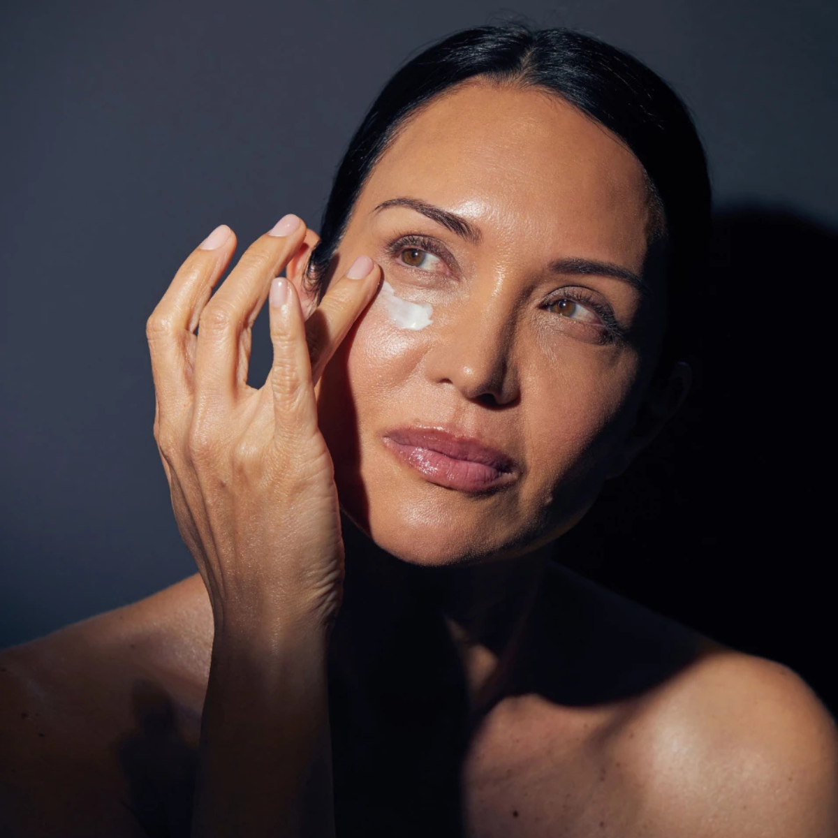 Apply half a pump and gently pat around the eye area using fourth finger.