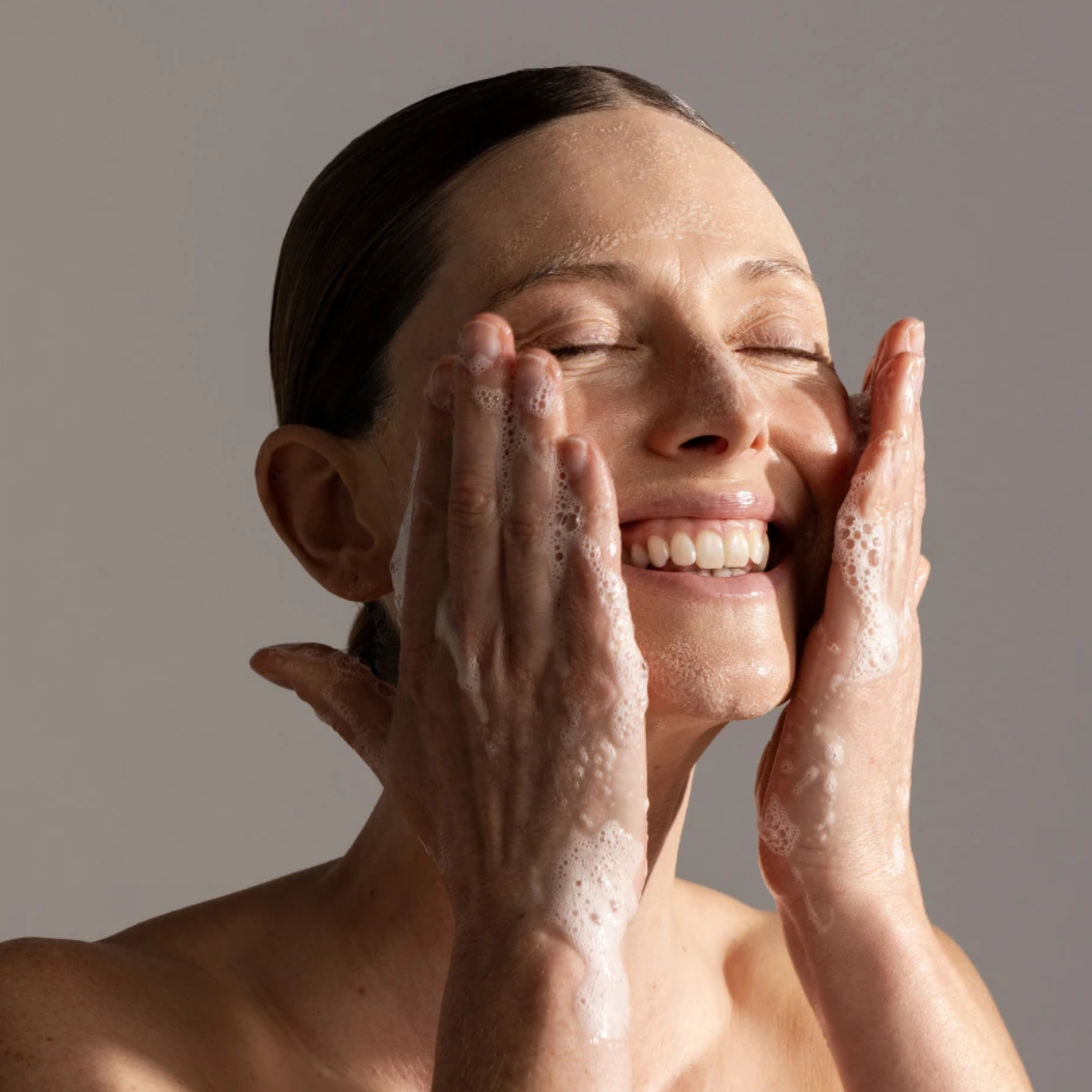 Mix half a pump in the palm of your hand with water to create a light lather. Massage over face before rinsing thoroughly.
